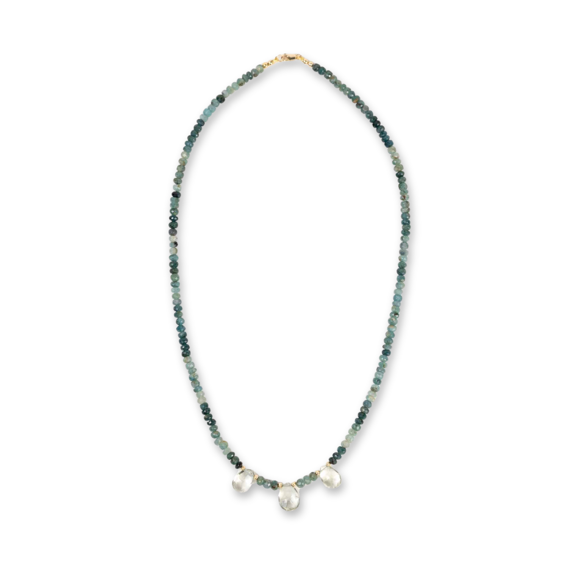 14K Gold Natural Zircon & Green Amethyst Necklace